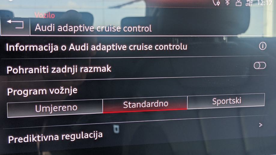 ADAPTIVNI TEMPOMAT S AUTOMATSKOM REGULACIJOM RAZMAKA I PROGRAMOM VOŽNJE